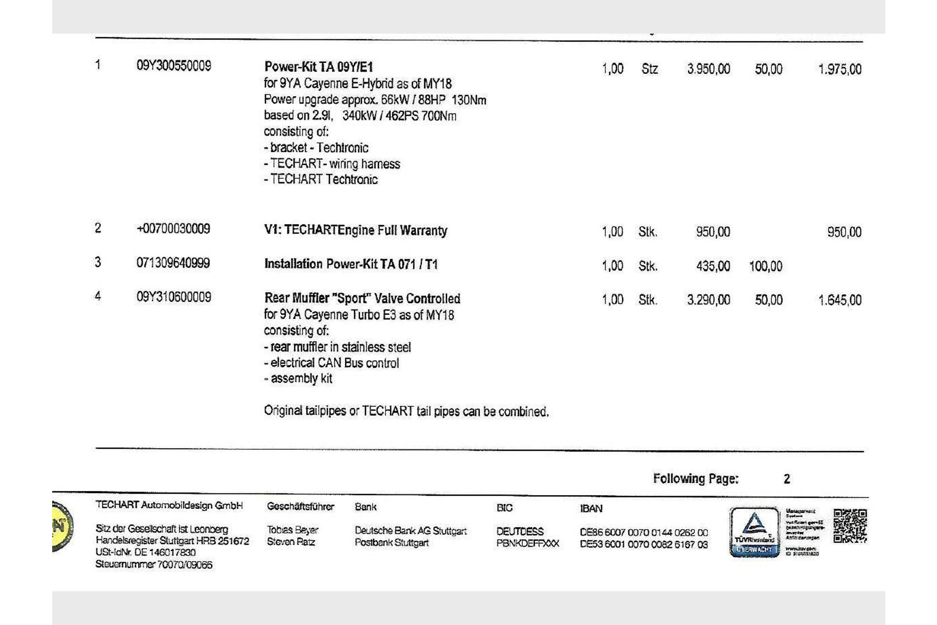 3.0 S E-Hybrid, 550 PK/Techart/Power, Pano/Dak, Adapt/Cruise/Control, Surround/View, Bose, Techart/Exhaust, 93DKM!